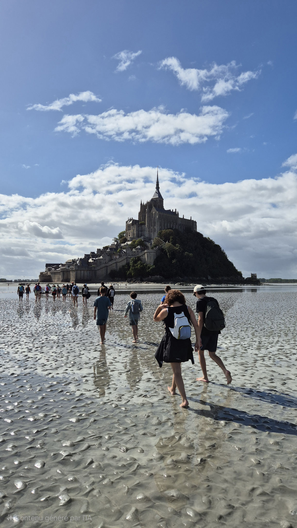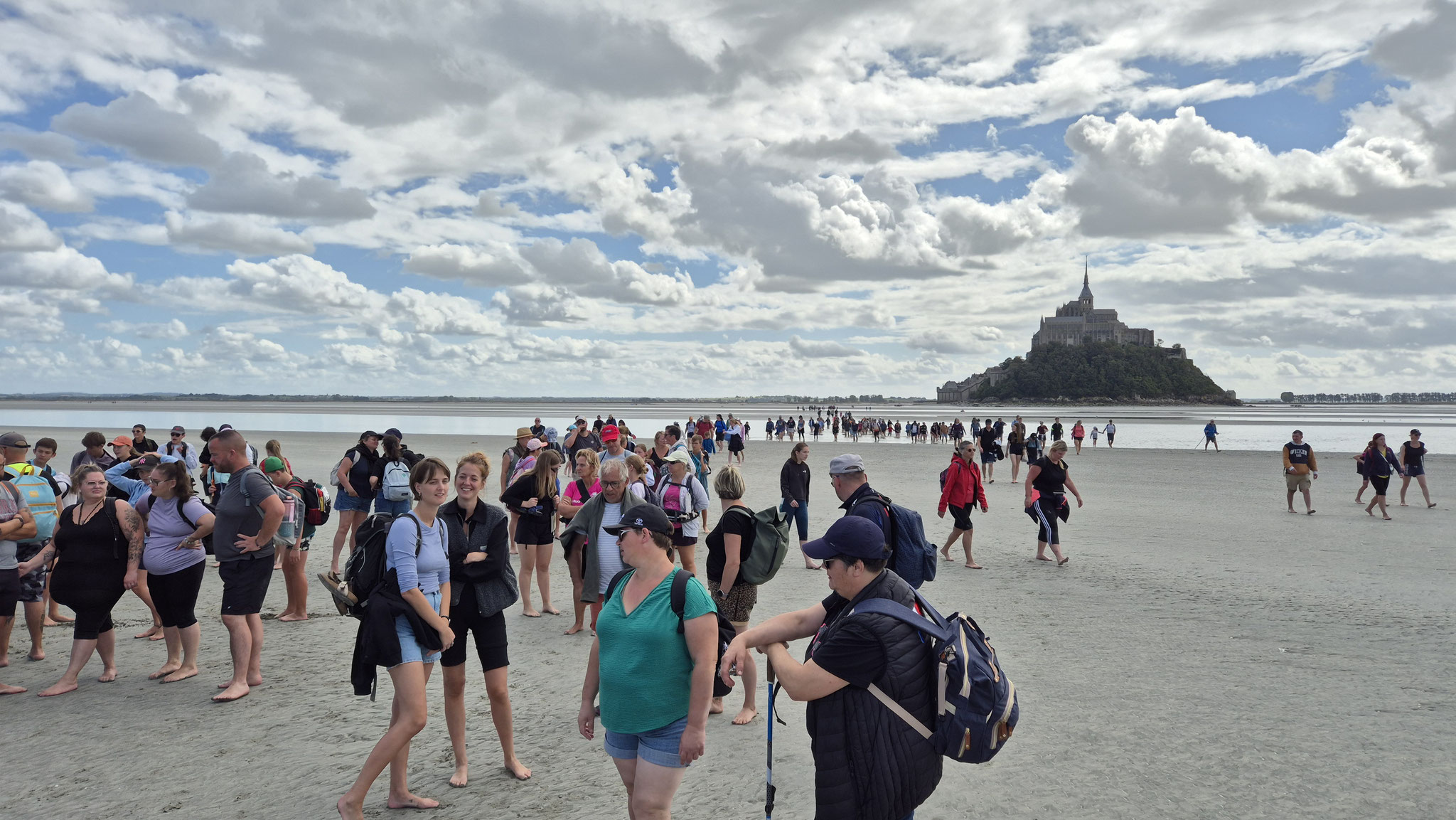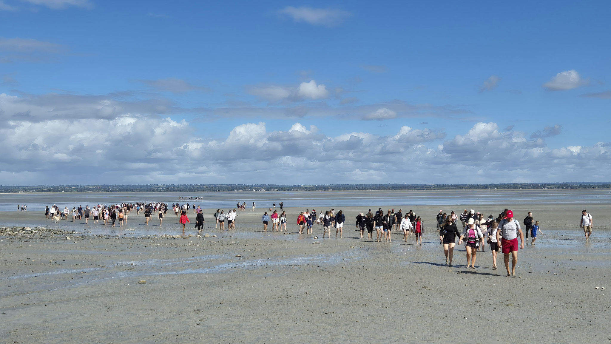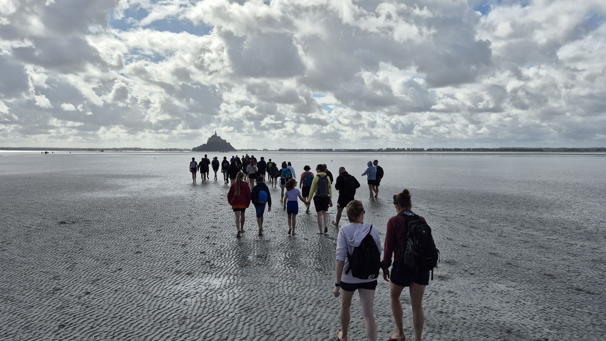 Ce dimanche 21 septembre, sous un beau et chaud soleil, nous étions presque 250 personnes à partager ce moment unique de la traversée des grèves du Mont St Michel.